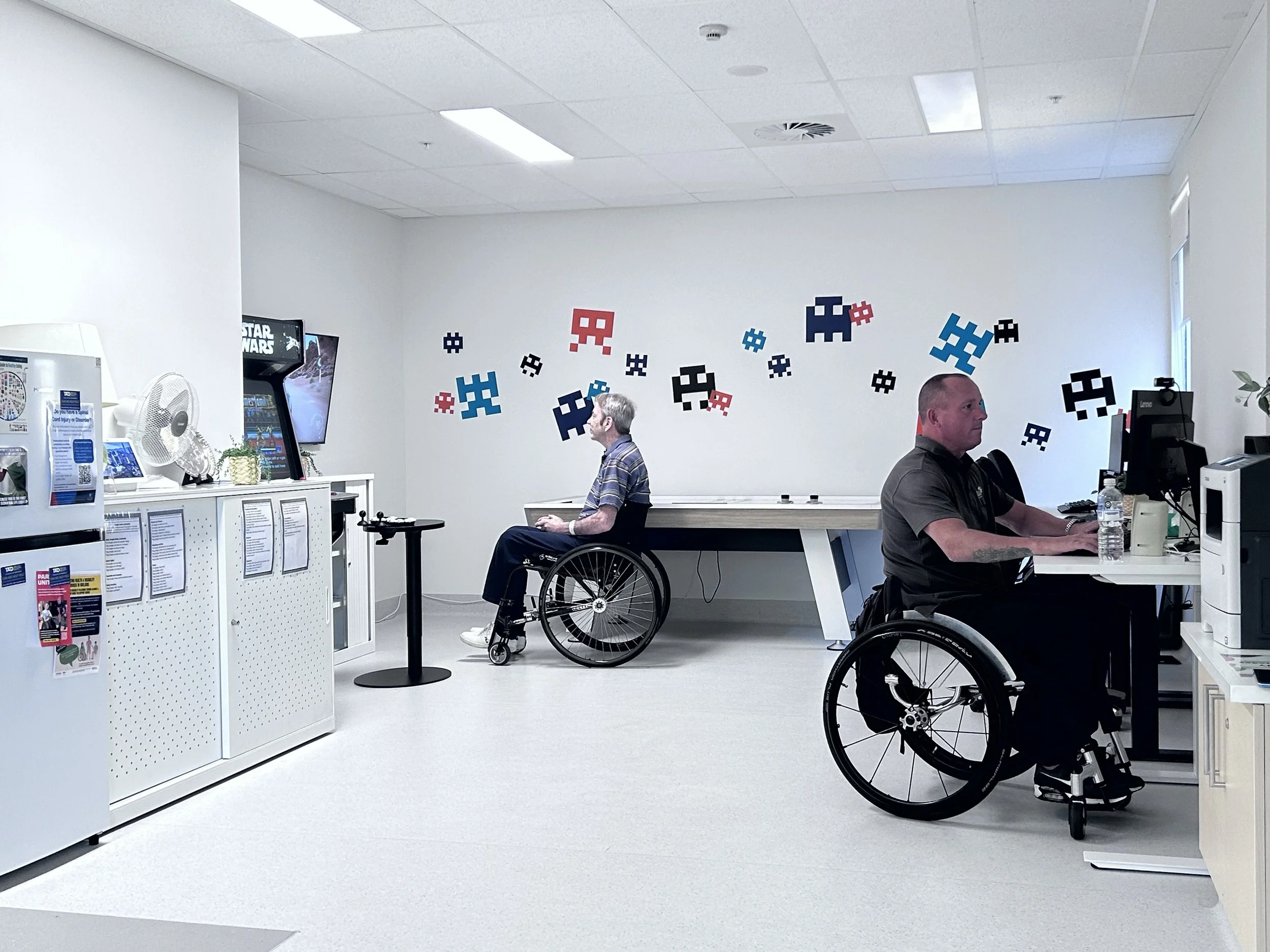 The QWERTY Hub is based at the Repatriation Health Precinct Spinal Unit. The hub provides a welcoming space away from the ward to meet socially, stay in touch with friends and family and improve digital access and skills.